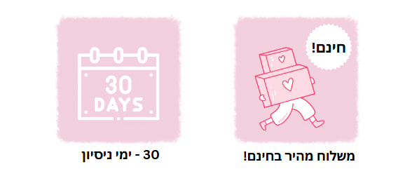 לא אהבתם את המוצר ב-30 יום הראשונים? פנו אלינו וקבלו החזר כספי מלא!